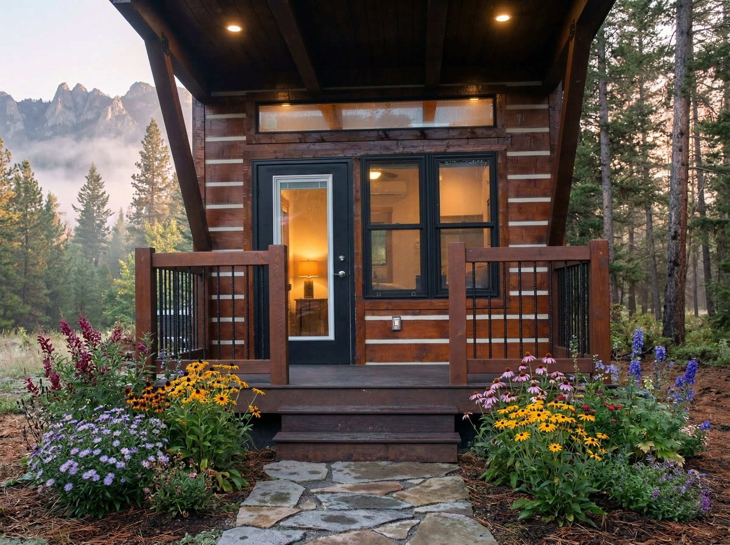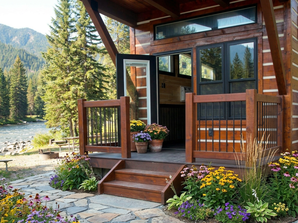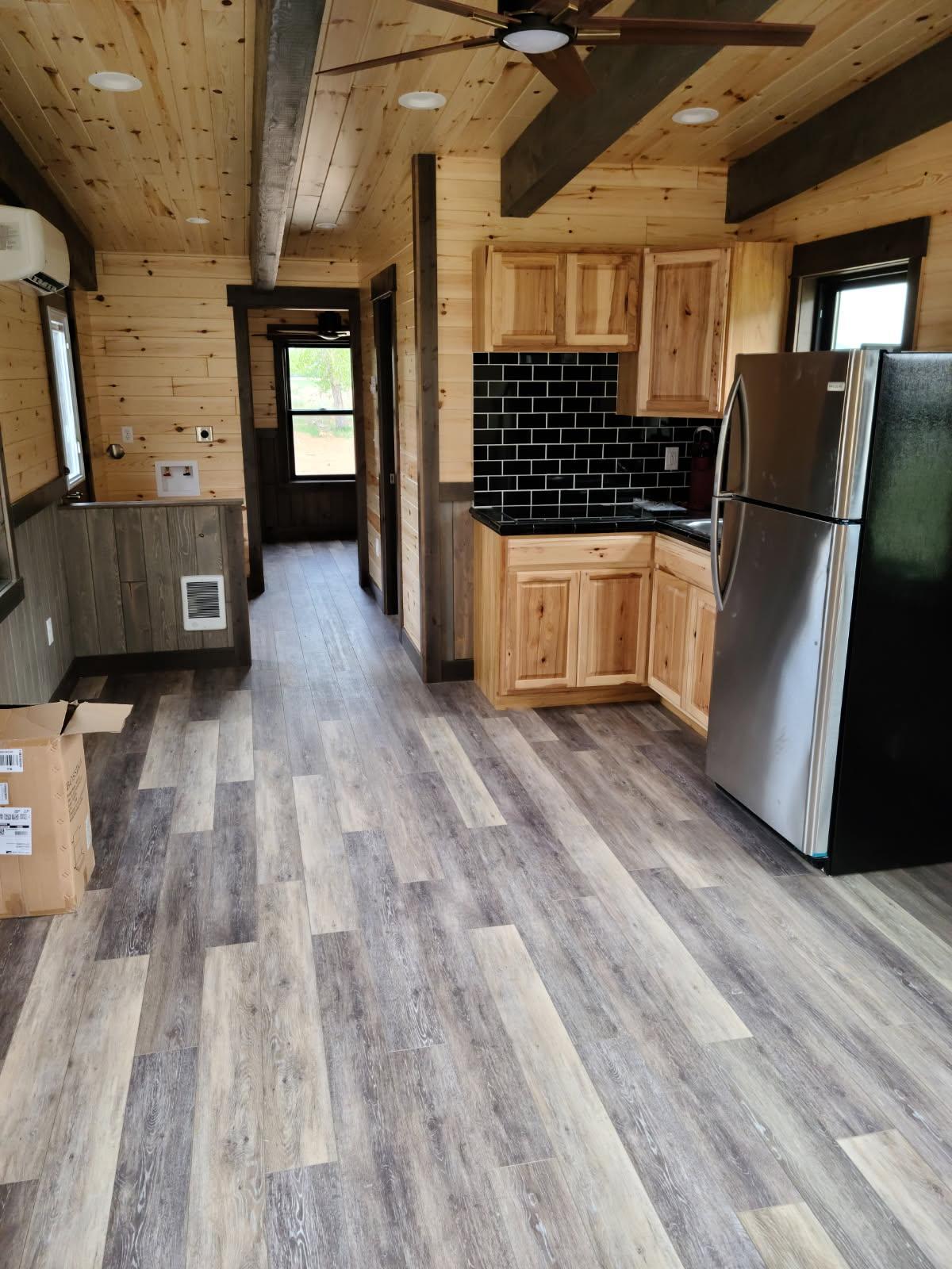 Looking for the modern profile? You've arrived. The Buffalo River cabin is a 39x13, meaning that there is ample room for a bedroom with a closet, a full bathroom with a tub/shower, and a kitchenette, while still having room for dining and living space! It also sports a 6' covered porch for all those beautiful morning coffee times when just sitting out on your rocker and watching the sunrise in the comfort of your porch is the perfect morning start.