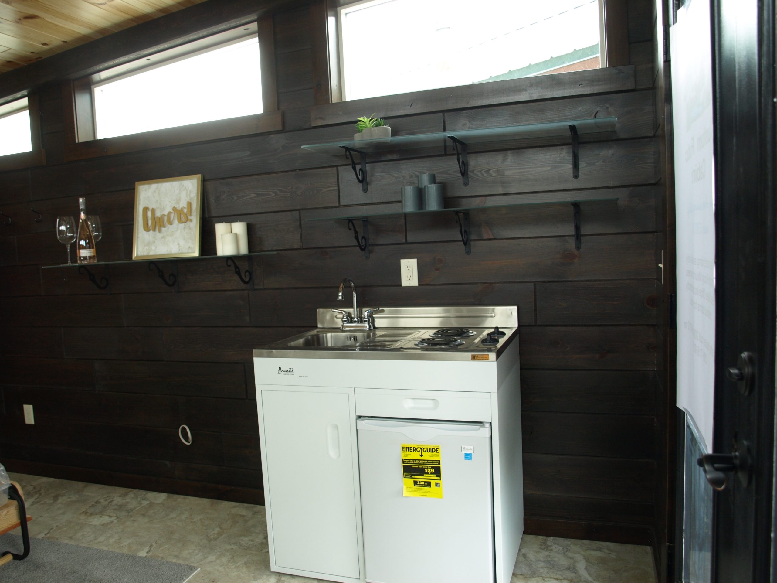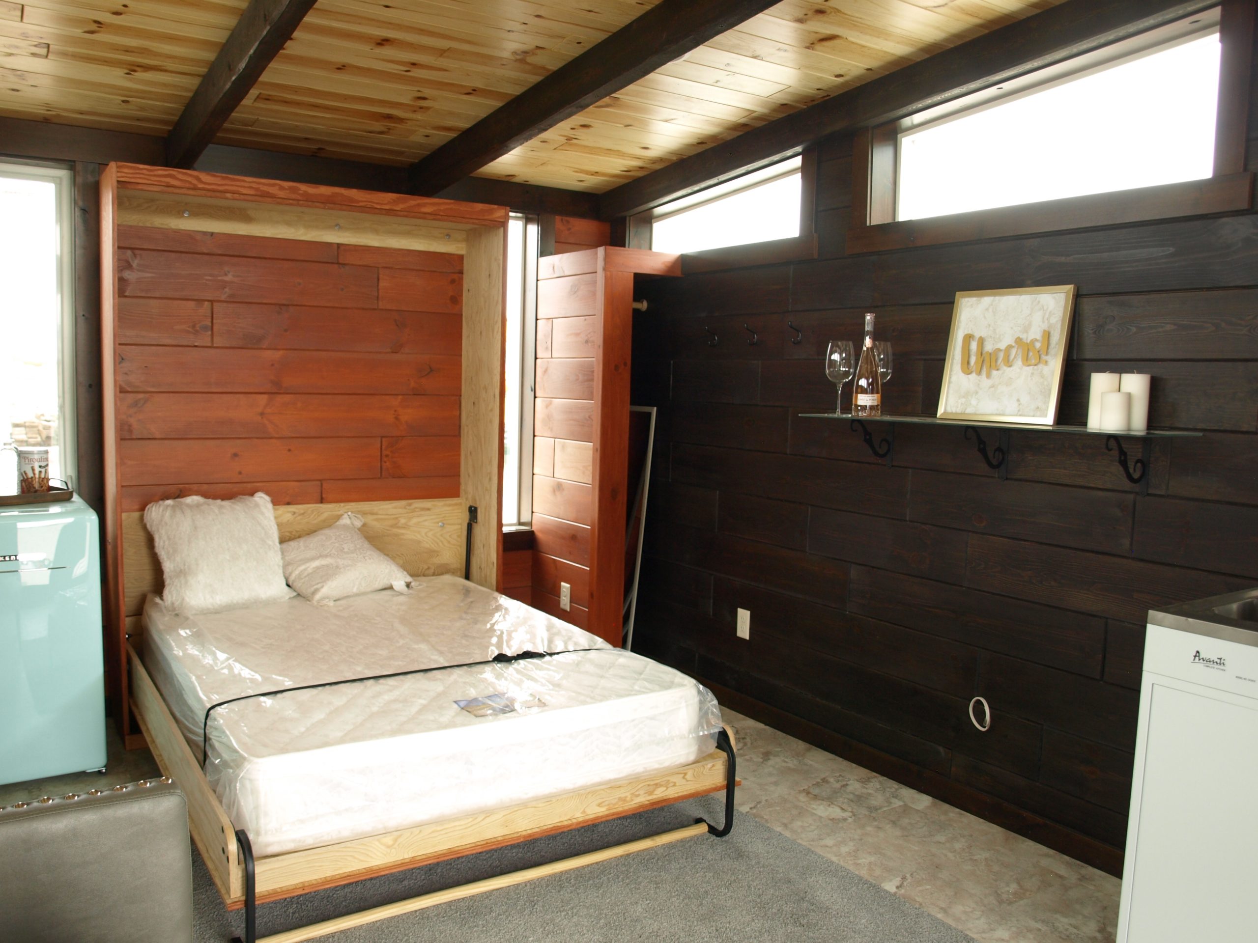 Moose Creek is a great option for those wanting a modern yet rustic-looking cabin for their backyard or campgrounds. With a bunk room for the children and space for a hide-a-bed sofa, this model is a very family friendly and efficient tiny home. It is a perfect choice for weekend getaways and retreats.