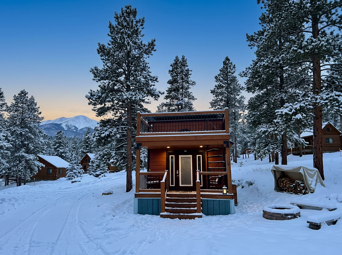 A favorite among our customers, the stargazer is a unique design featuring a stargazer deck, an upstairs sleeping loft, and a full kitchen, bathroom, and bedroom.